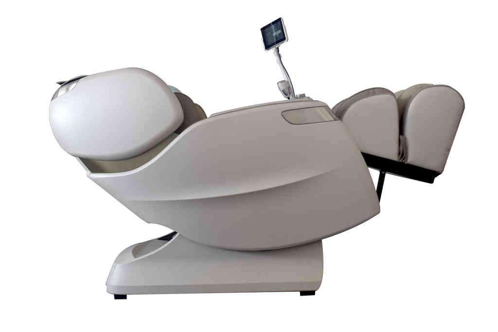 La poltrona massaggiante premium "Chef 2.0" AT 629 di Alpha Techno è il successore della leggendaria AT 628. Oltre ai miglioramenti dettagliati della guida per l'utente sul tablet, il principale sviluppo è un nuovo sensore per la misurazione dell'umidità della pelle che riflette il grado di tensione. Nel programma Chair Doctor, all'inizio viene effettuato un controllo del corpo. Si tiene il sensore in mano e lo si racchiude nel pugno e nel pollice. Sulla base di questa misurazione, viene poi creato un programma di massaggio individuale che massaggia le aree rigide in base alla situazione.