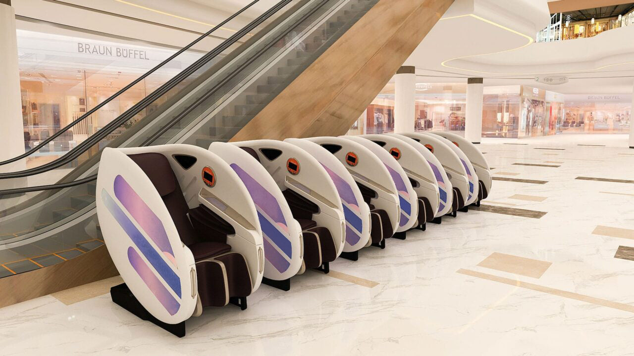 UN MOMENTO DI PAUSA TRA LA FOLLA La forma a capsula della poltrona la rende perfetta per spazi commerciali . I lati chiusi e la posizione reclinabile favoriscono il relax e offrono all'utente momenti di riposo anche nei luoghi più affollati. Questo modello rende più piacevoli le attese in vari luoghi come aeroporti, sale d'attesa o centri commerciali.