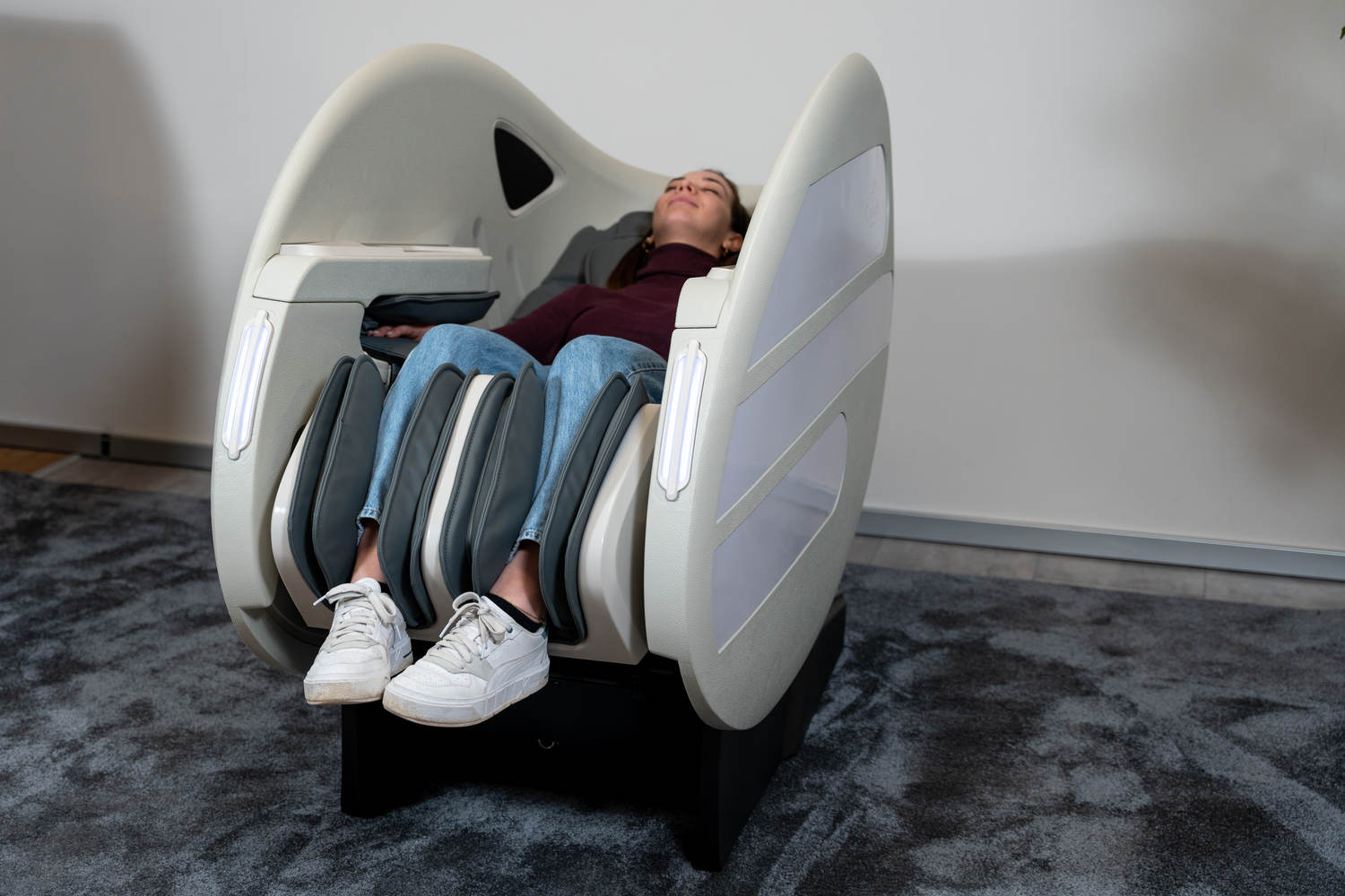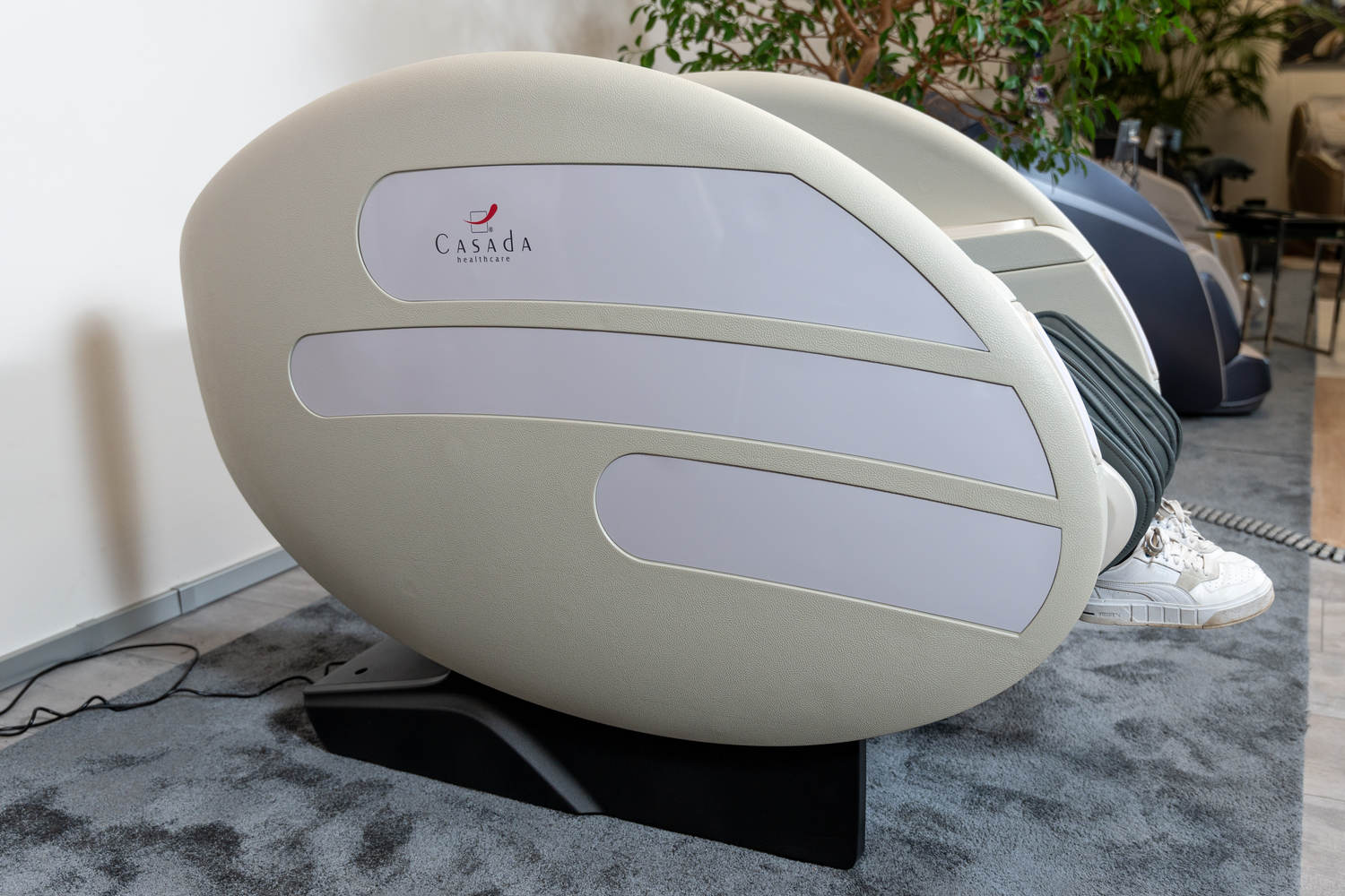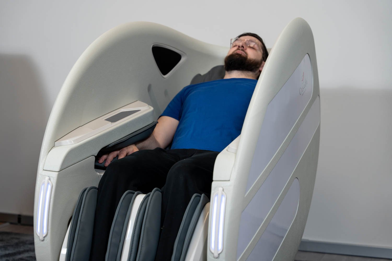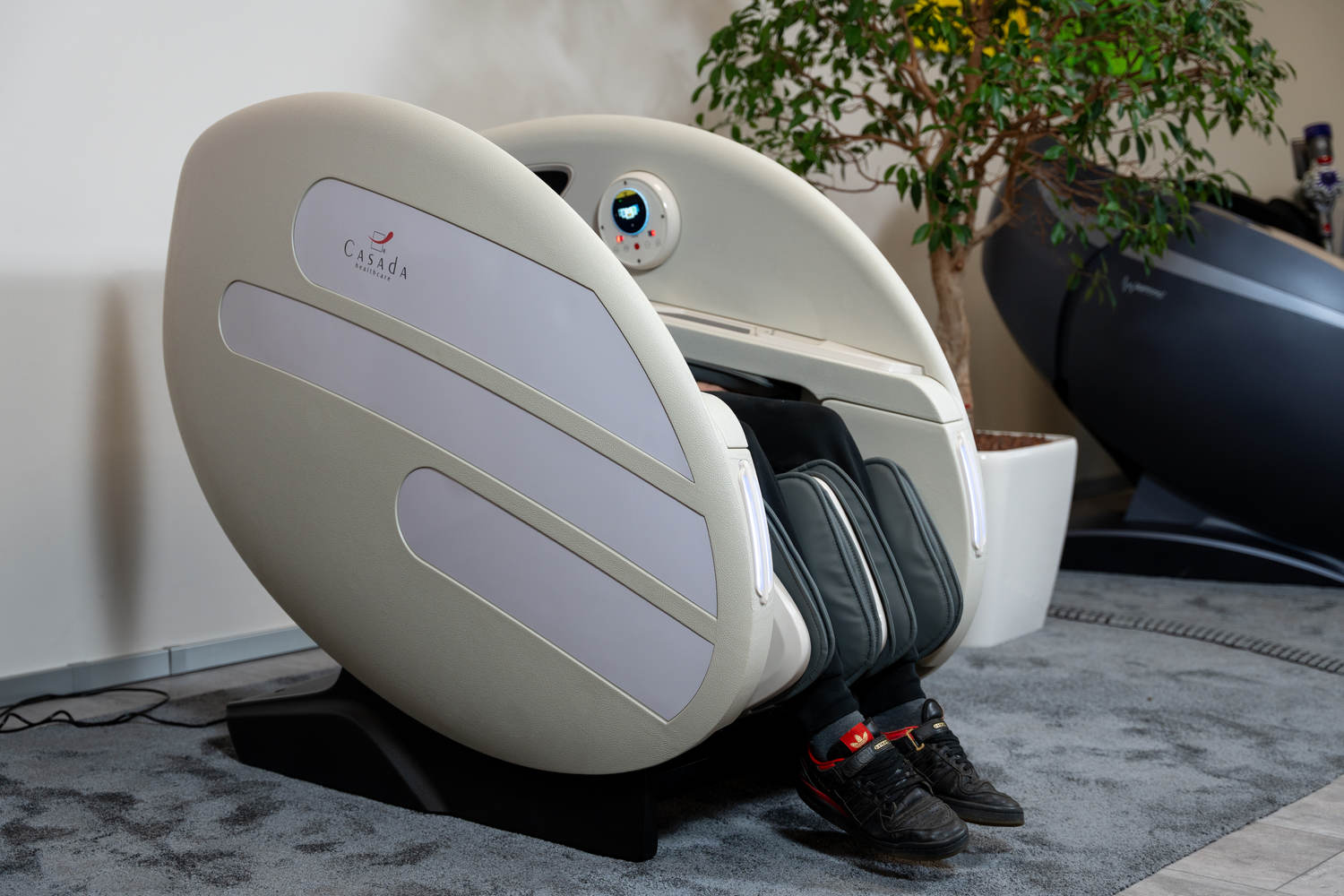Casada Atlas è una poltrona massaggiante unica nel suo genere che può essere utilizzata per creare zone di relax in aree pubbliche. aree pubbliche. La sua particolarità è il design futuristico a capsula, che nasconde tecnologie di massaggio avanzate. Inoltre, la posizione reclinabile e i lati incassati della poltrona offrono all'utente un relax spensierato con una sensazione di sicurezza. sensazione di sicurezza e privacy anche in ambienti molto affollati.