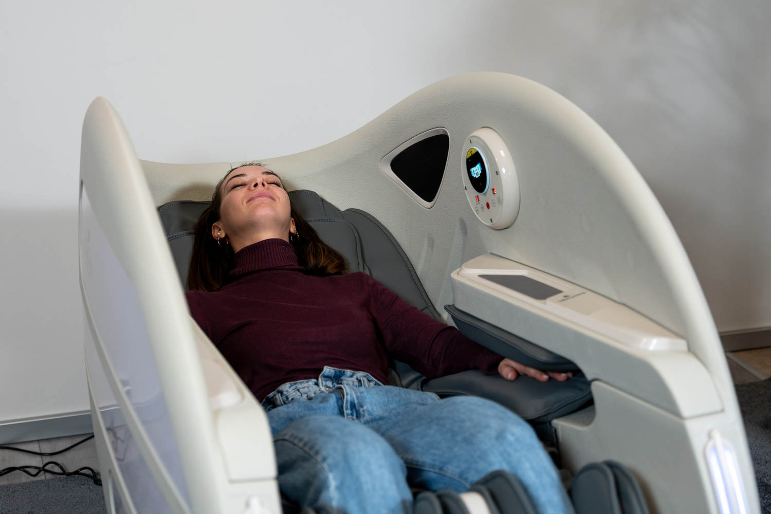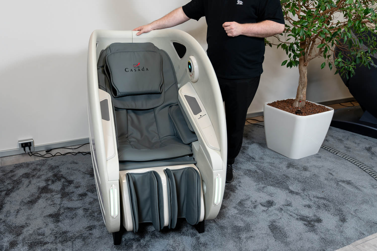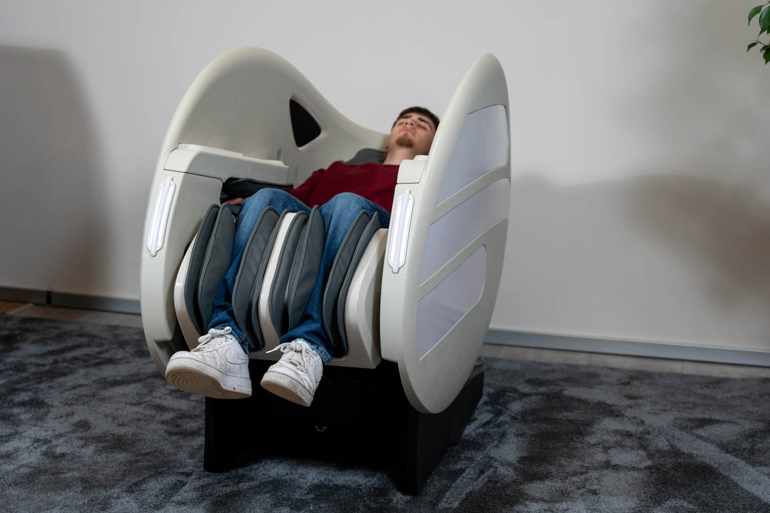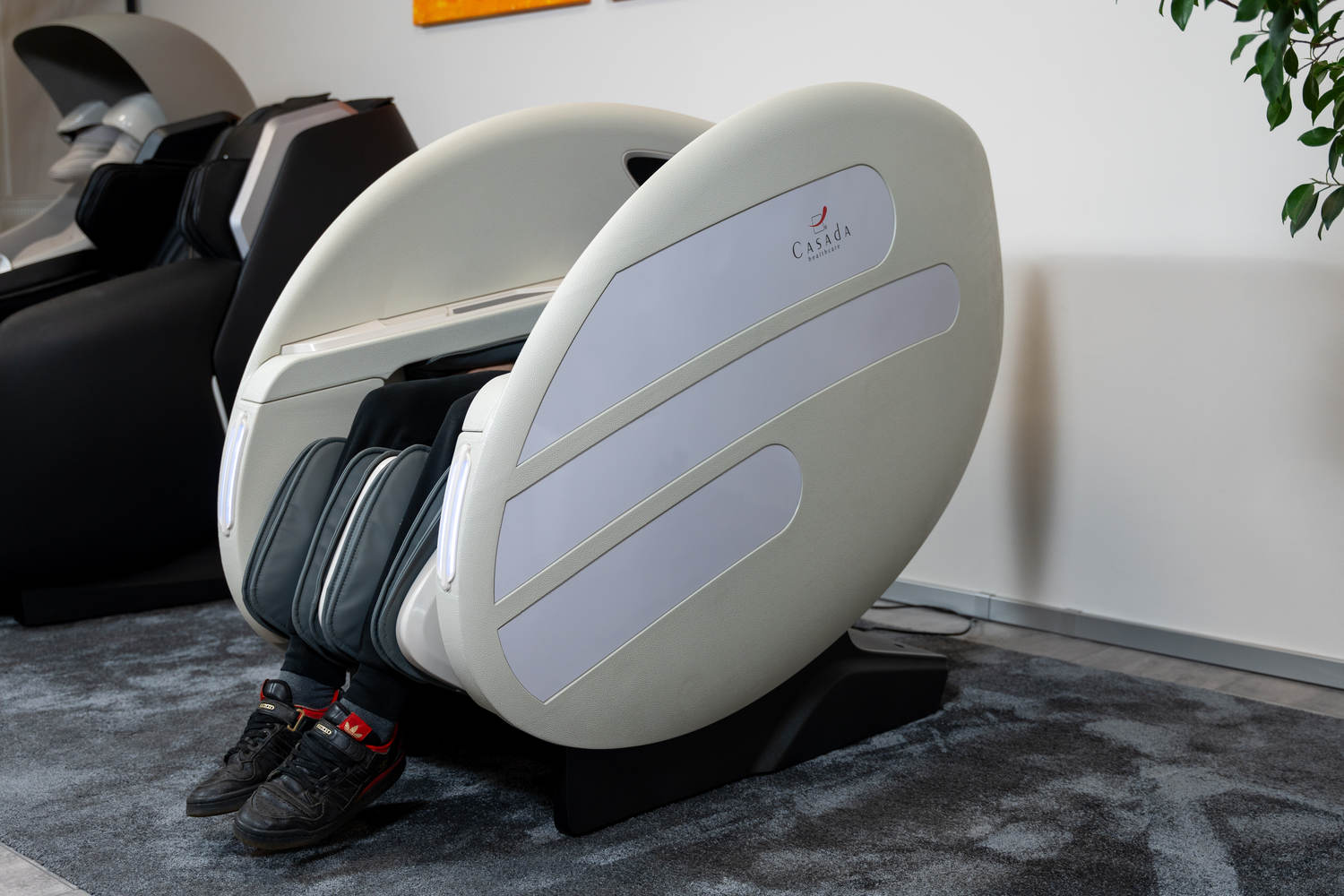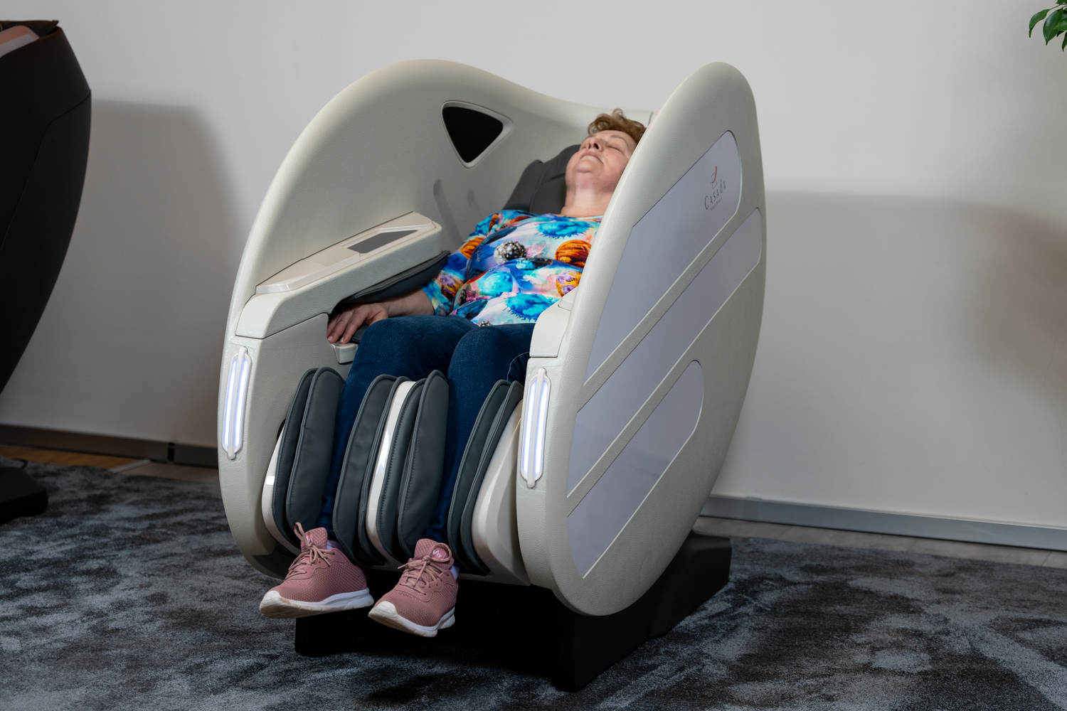 Casada Atlas è una poltrona massaggiante unica nel suo genere che può essere utilizzata per creare zone di relax in aree pubbliche. aree pubbliche. La sua particolarità è il design futuristico a capsula, che nasconde tecnologie di massaggio avanzate. Inoltre, la posizione reclinabile e i lati incassati della poltrona offrono all'utente un relax spensierato con una sensazione di sicurezza. sensazione di sicurezza e privacy anche in ambienti molto affollati.