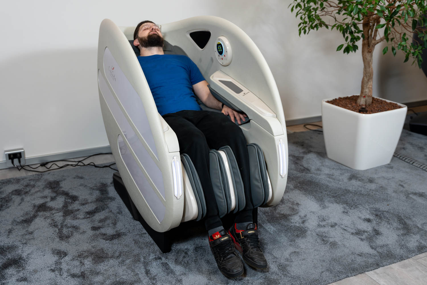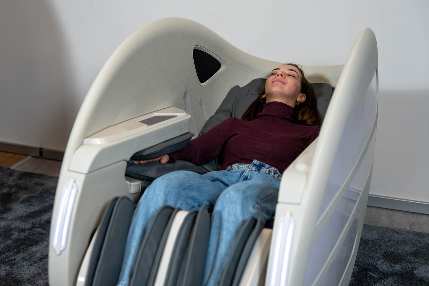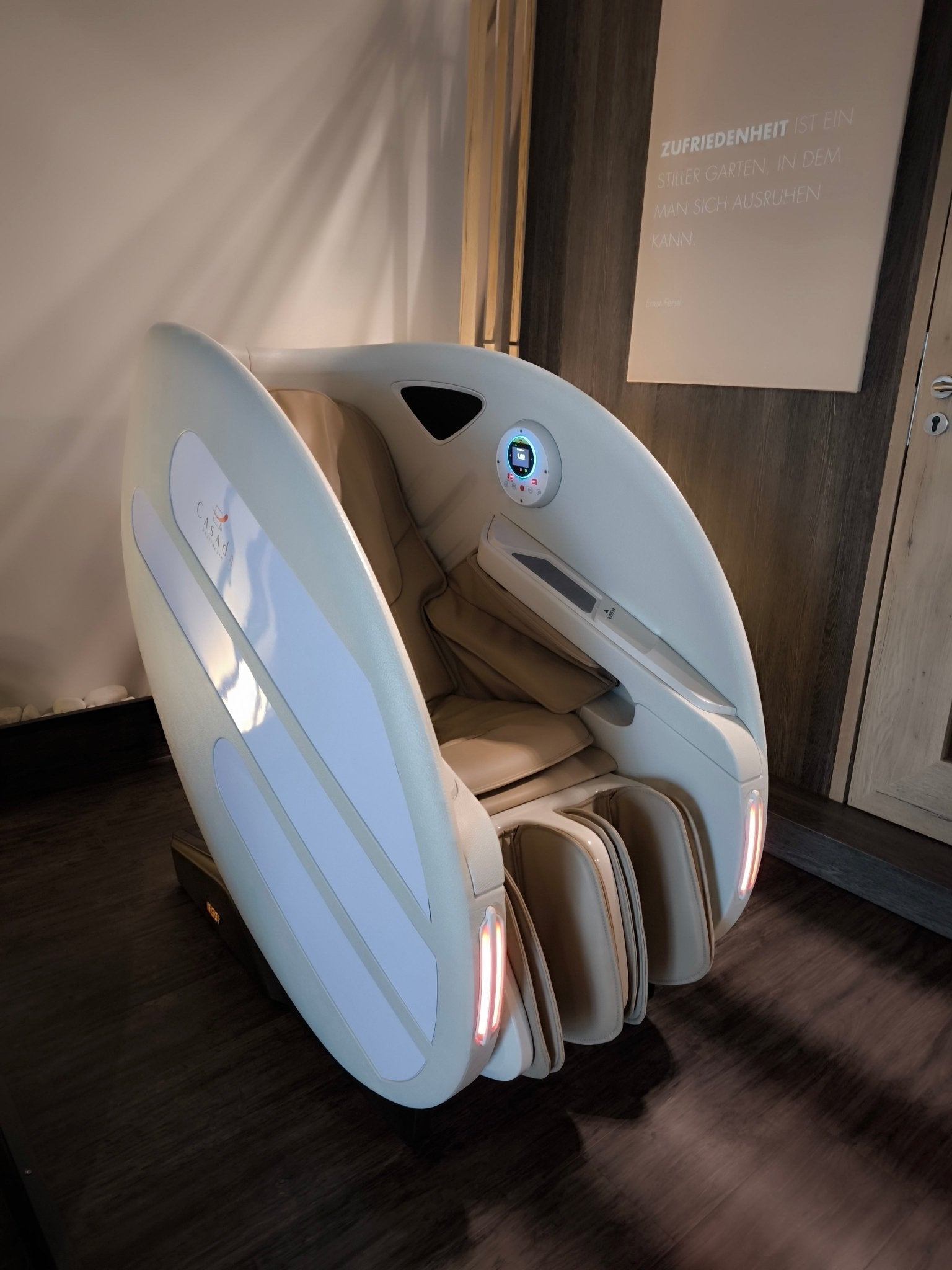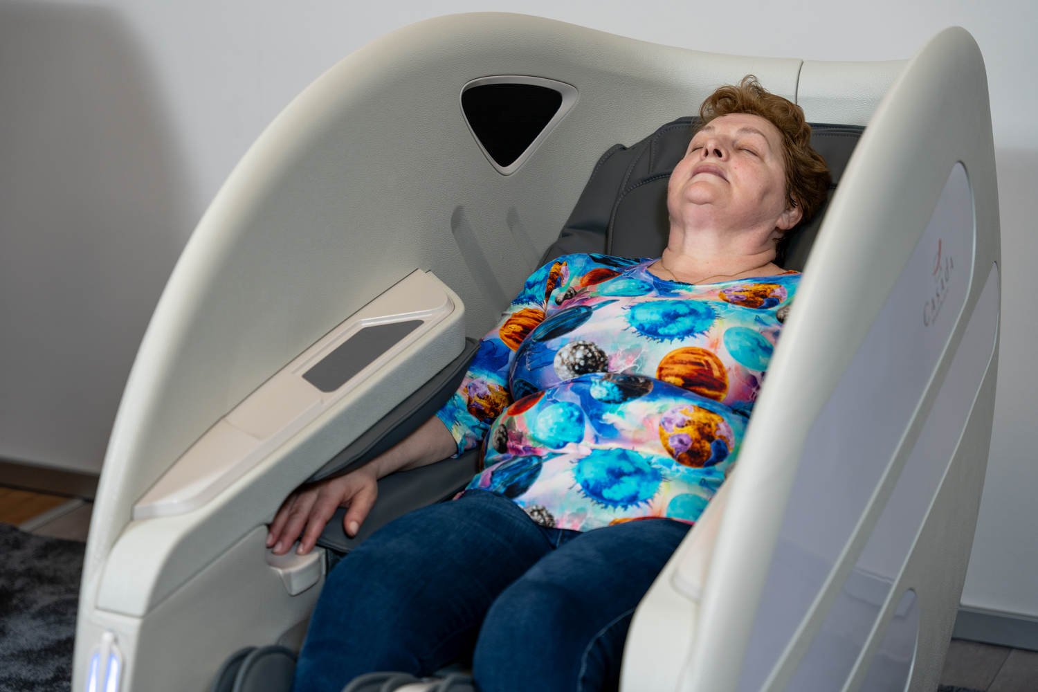 Casada Atlas è una poltrona massaggiante unica nel suo genere che può essere utilizzata per creare zone di relax in aree pubbliche. aree pubbliche. La sua particolarità è il design futuristico a capsula, che nasconde tecnologie di massaggio avanzate. Inoltre, la posizione reclinabile e i lati incassati della poltrona offrono all'utente un relax spensierato con una sensazione di sicurezza. sensazione di sicurezza e privacy anche in ambienti molto affollati.