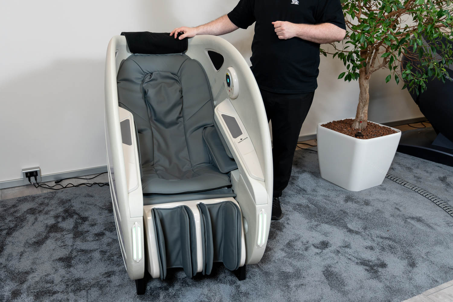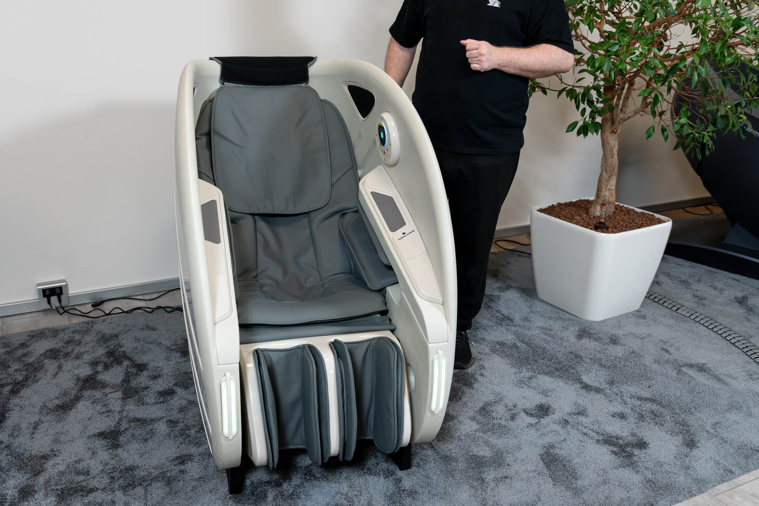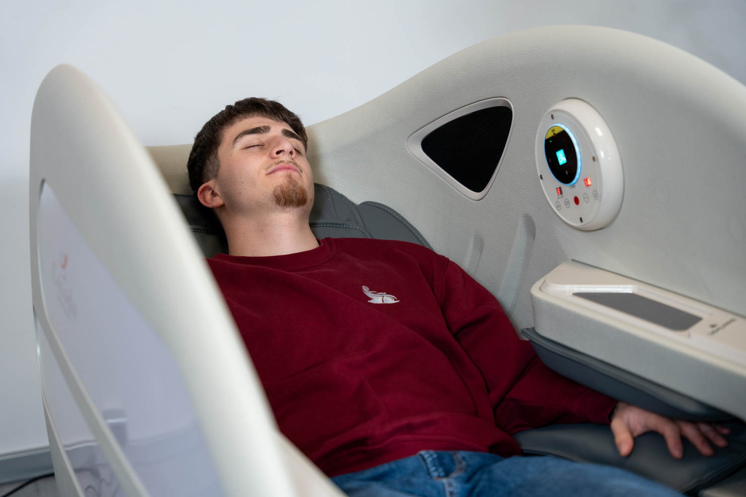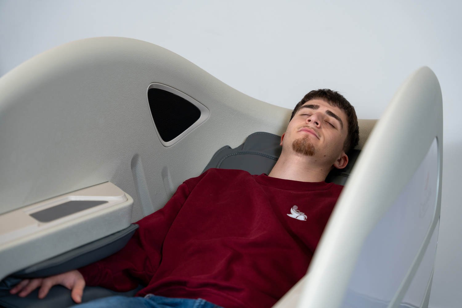 Casada Atlas è una poltrona massaggiante unica nel suo genere che può essere utilizzata per creare zone di relax in aree pubbliche. aree pubbliche. La sua particolarità è il design futuristico a capsula, che nasconde tecnologie di massaggio avanzate. Inoltre, la posizione reclinabile e i lati incassati della poltrona offrono all'utente un relax spensierato con una sensazione di sicurezza. sensazione di sicurezza e privacy anche in ambienti molto affollati.