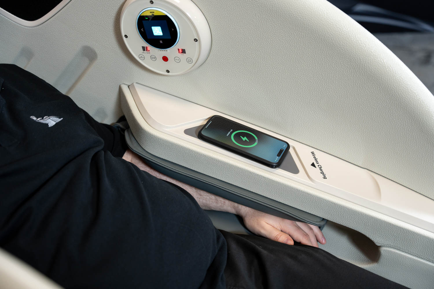 CARICATORE INDUTTIVO Per aumentare il comfort durante il massaggio, la poltrona è dotata anche di un caricatore a induzione wireless per dispositivi mobili.