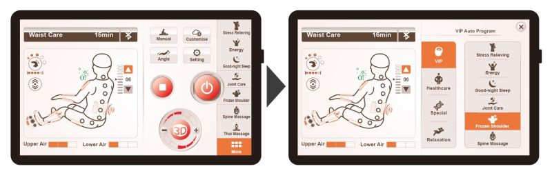 Lo Skyliner II vi porta in un mondo di pace e relax da sogno. Una volta sistemati nella comoda posizione di seduta, potrete selezionare una delle numerose tecniche di massaggio attraverso il telecomando touchscreen di facile utilizzo e rilassarvi come mai prima d'ora.