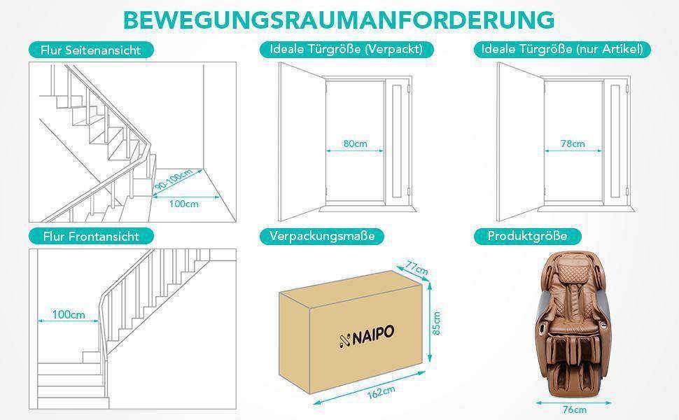 Con l'MGC-A350 "entry-level" di NAIPO, non solo avrete il vostro tempio del benessere personale, ma anche un gioiello visivo che si integra elegantemente nella vostra oasi di benessere. Il cuore di "starter", dal design compatto, convince per l'accogliente imbottitura e il design "zero wall" a risparmio di spazio. Questo design sofisticato consente di posizionarlo a una distanza minima dalla parete retrostante o di collocarlo senza problemi e in modo discreto in una posizione angolare. Rivestito in resistente similpelle, disponibile nei colori nero e marrone chiaro, lo sporco può essere rimosso in un attimo con un panno umido. Nobili accenti in un motivo trapuntato a rombi sottolineano il carattere lussuoso del "principiante". Un poggiapiedi regolabile in lunghezza di 20 centimetri consente un utilizzo completo anche per utenti alti fino a 1,80 metri. Gli utenti più alti, tuttavia, devono tenere presente che la poltrona massaggiante può essere utilizzata solo in misura limitata nella zona delle spalle a causa della loro statura.